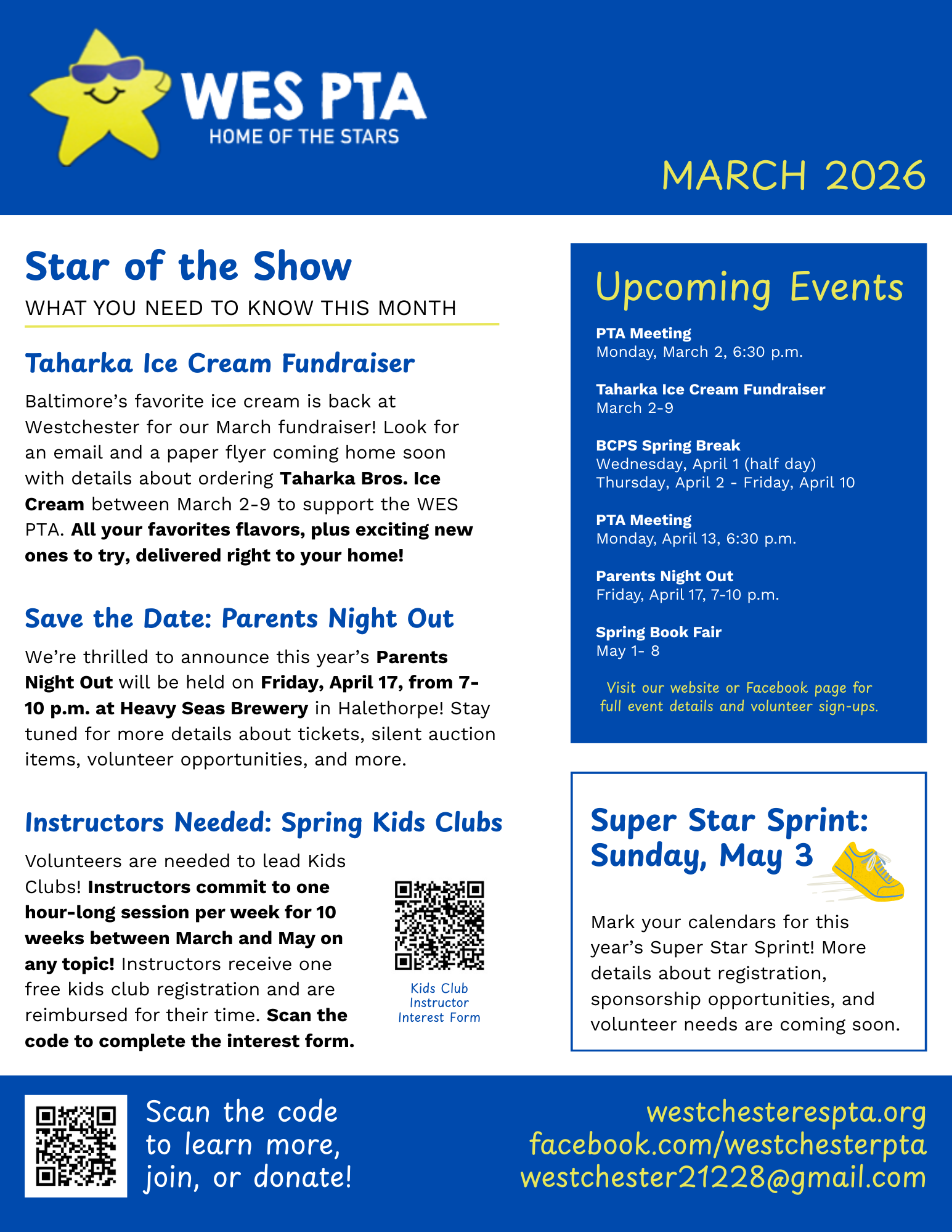 The Westchester Elementary School PTA is a nonprofit volunteer organization that serves as a resource for families with students attending the school. Please feel free to reach out to anyone on our Board with any questions you may have! Contact the board at westchester21228@gmail.com.